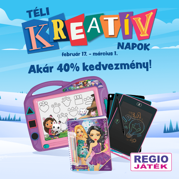 Az akció kizárólag 2026. február 17.- március 1. között, illetve a készletek erejéig érvényes az ország összes REGIO JÁTÉK áruházában és a webáruházban. Más akciókkal nem összevonható. A termékek elérhetősége áruházanként eltérhet. Felhívjuk a figyelmet, hogy bizonyos termékek kedvezményes ára csak online vásárlás esetén érvényes. A kép illusztráció.