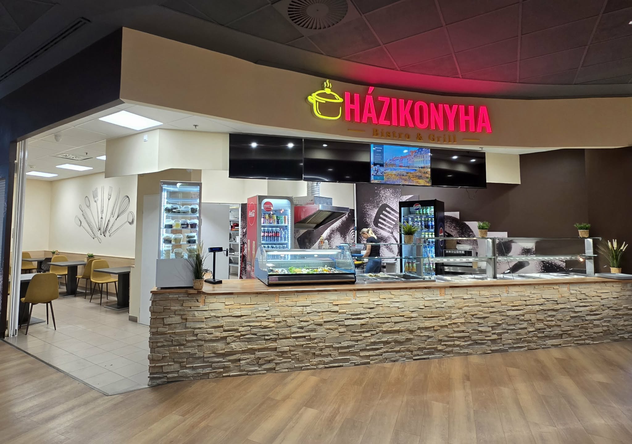 A Házikonyha koncepciója: minőségi alapanyagok, ismerős ízek, korrekt adagok és gyors kiszolgálás. Ez teszi ideális választássá irodai dolgozóknak, rendezvénylátogatóknak és bevásárlás közben megéhezőknek egyaránt.